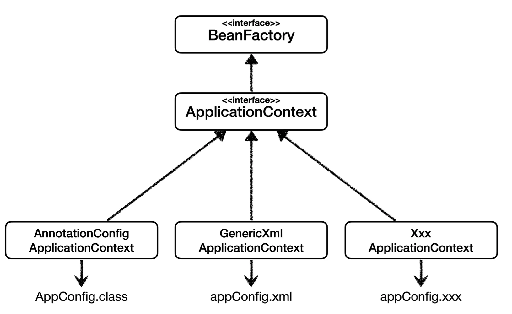 ApplicationContext를 스프링 컨테이너라 한다. 스프링 컨테이너는 XML 기반으로 만들 수도 있고 애노테이션 기반의 자바 설정 클래스로도 만들 수 있다.