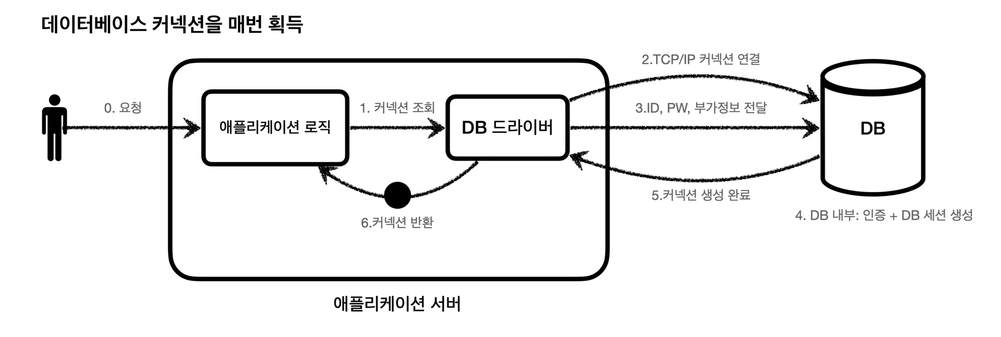 이처럼 커넥션을 새로 만드는 것은 과정도 복잡하고 시간도 많이 소모되는 일이다. DB는 물론이고, 애플리케이션 서버에서도 TCP/IP 커넥션을 새로 생성하기 위한 리소스를 매번 사용해야 한다. 이처럼 커넥션을 새로 만드는 시간이 추가 되기 때문에 결과적으로 응답 속도에까지 영향을 주게 된다.