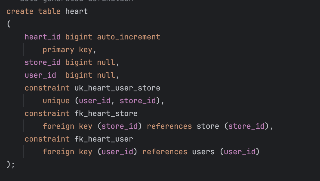 참고로, heart 테이블의 DDL은 이어서 첨부된 사진과 같다.