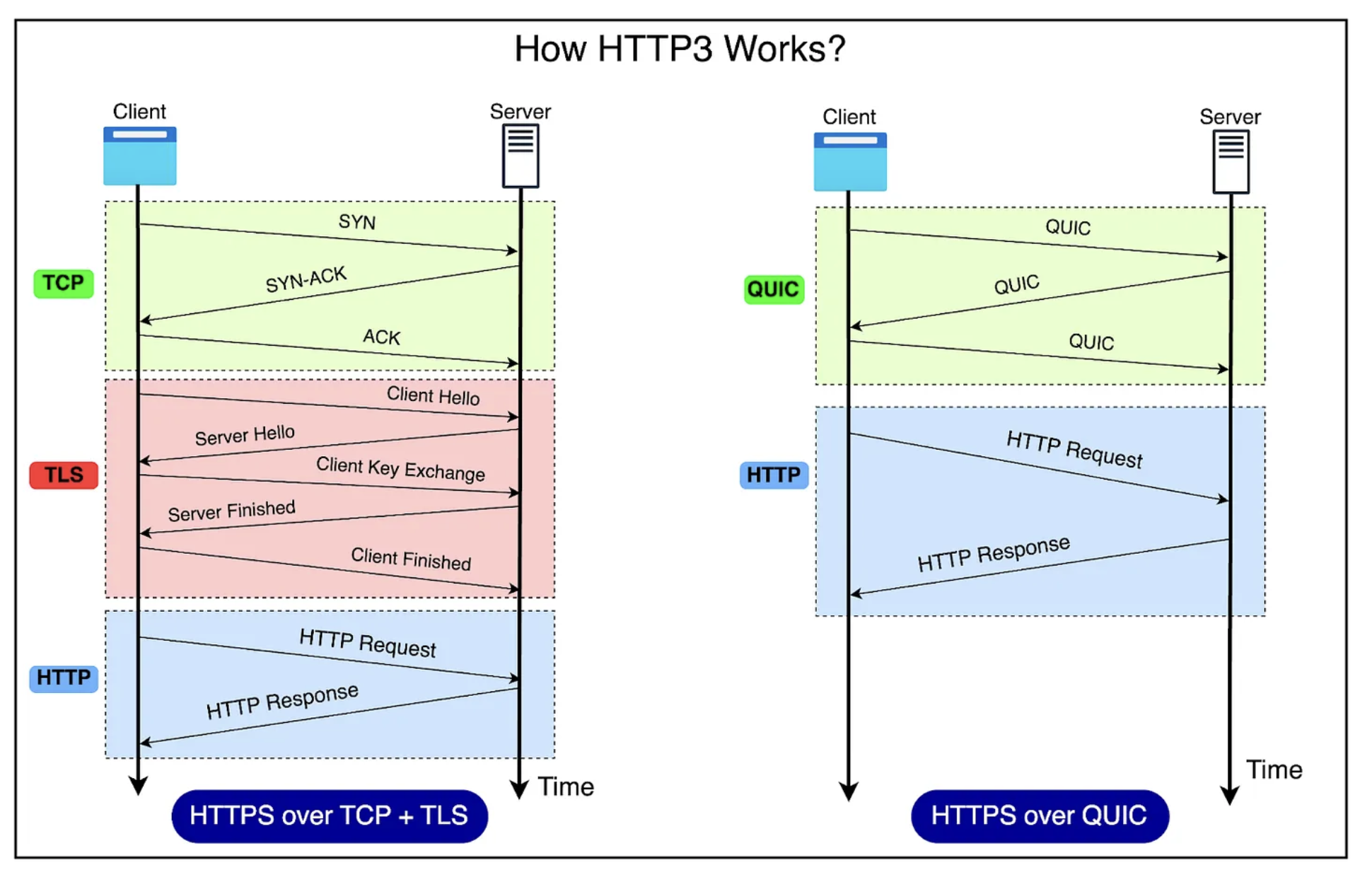 HTTP/3는 TCP 대신 QUIC을 기반으로 하여, 기존 HTTP/2에서 발생하던 전송 계층의 한계를 해결하고자 했다.