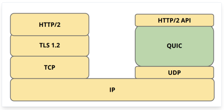 QUIC은 구글에서 설계된 범용 목적의 전송 계층 통신 프로토콜로, TCP의 성능을 개선하고자 UDP기반으로 만들어진 프로토콜이다. UDP는 처리 속도가 빠른 반면 데이터의 신뢰성 확보가 어렵지만, QUIC 계층을 추가하여 TCP만큼 신뢰성을 제공할 수 있게 하였다.